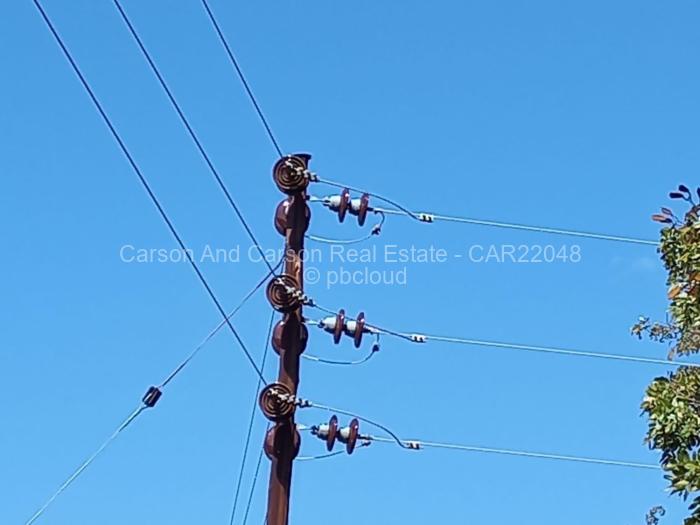 Electricity is readily available, as indicated by the sturdy power lines that stretch across the property, suggesting that energy needs can be easily met. An incomplete brick structure offers potential for development, allowing you to customize your living or operational space in this serene location.